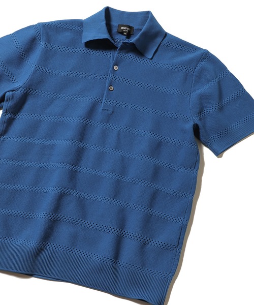 【大定番の鹿の子にさり気ないアレンジ! こんなポロシャツが欲しかった!!】12G(ゲージ)というハイゲージの鹿の子組織をベースに、メッシュのボーダーをいれたデザイン性の高いポロシャツ。さり気ないデザインなので主張は抑えめですが、他にはない上品顔のポロシャツに仕上がりました。こんなポロシャツ、探してたって人は多いのではないでしょうか?!【デザイン・カラー】メッシュでさり気なくボーダーを表現した大人のための品の良いポロシャツ。取り入れやすい4つのカラーバリエーションは、どれも着てみたいカラーリングばかり。一枚でも様になりますが、ジャケットやブルゾンのインナーとしても活躍します。▽穏やかで上品な印象の<ライトグレー>▽温もりや安心感を与える<ブラウン>▽爽やかで落ち着いた印象の<ネイビー>▽明るい空や南国の海のような、開放的なイメージの<ターコイズ>【素材】軽量で伸縮性のあるポリエステル素材は、抜群の着心地の良さです。【コーディネート】上品顔したシンプルな一枚なので、さまざまなパンツと相性が良く、ある意味コーディネートに悩まない優秀なアイテムと言えそう。中でも、スラックス系やホワイトパンツ、洗いざらしのデニムは特におすすめです。【サイズ表記に関して】商品タグにはサイズ部分に数字が表記されています。01はSサイズ, 02はMサイズ, 03はLサイズ, 04はLLサイズを表します。モデル 身長184cm 胸囲95cm ウエスト78cm ヒップ94cm 着用サイズ:03(L)※着用画像は光の加減等で仕様が異なる場合があります。※着用画像はサンプルのため仕様が異なる場合があります。
