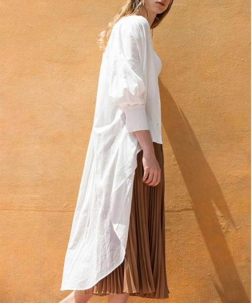 LUGIVA-ルギヴァ-スポーティーやミリタリーのもつマニッシュテイスト機能性と柔らかさのある 女性的なディティールを加えた”今の私の感覚”と”ワードローブに残る心地良さ”を大切にすることを提案するブランドです。大胆なラウンドヘムラインがポイントのブラウス。さらっとしたボイル生地を使用し、春夏らしい涼しく爽やかな着心地の一枚です。フロントからバックにかけて長くなったシルエットなので、気になるウエスト周りやヒップ周りもしっかりカバーしてくれます。スキニーやテーパード等の細身のパンツ合わせやゆるっとしたパンツでリラックス感のあるナチュラルスタイルにもおすすめです。シンプルカラーにすっきりとしたスキッパーデザインなので、ピアス、ネックレス、バングル等でアクセントを付けるのも◎※撮影場所や明るさにより実際の商品と色味が若干異なる場合がございます。 ☆商品のお気に入り♡登録を押せば”再入荷通知”や”残りわずか通知” 値下げのお知らせが届きます!お気に入りのブランド登録していただければ新商品入荷のお知らせも届きますので是非登録してみて下さい。