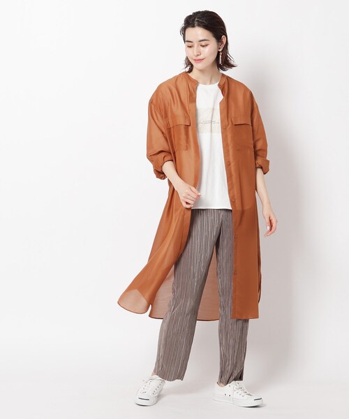 トレンドのシアーな透け感のシャツワンピースです。 Tシャツやイージーパンツと合わせるのが今年の気分! さっと羽織りでも旬なトレンドスタイルの完成です。 【マシンウォッシャブル】 ※ポケット数:胸×2 こちらの商品は主に夏に着用いただける商品です。 モデル情報:身長168cm B80 W59 H87 着用サイズ:12(M) 店舗へのお問い合わせ商品番号:040-52013 ●製品寸法: 12(M):着丈110cm B120cm 袖丈50cm 肩幅53cm W122cm H126cm 13(L):着丈112cm B123cm 袖丈51cm 肩幅54cm W125cm H129cm 備考: