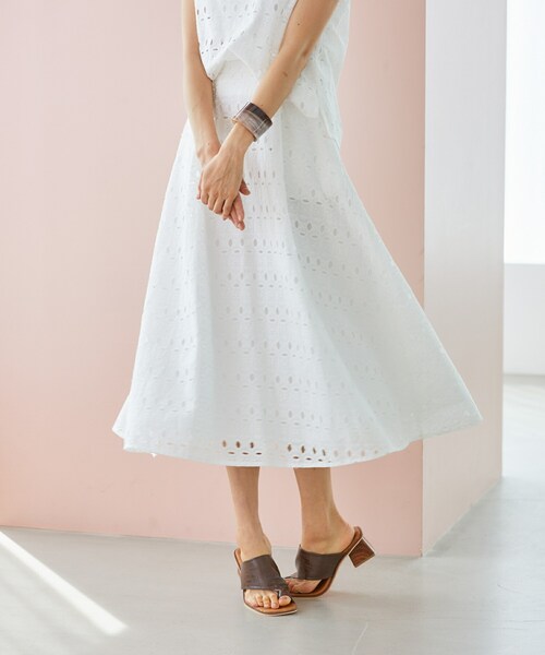 フラワーレースが軽やかな印象のフレアスカート。 「ふわり」と広がるフレアなシルエットで気になるラインをカバーしてくれる優秀スカートです。 サイドジップとバック部分はゴム仕様で窮屈感のない着心地です。 同生地の刺繍レースバックZIPブラウス(1R13-04139)とセットアップ風に着用するのもおすすめです。 ※シロは透ける可能性がありますので、透けにくいインナーの着用をおすすめします。 サイズ: (Sサイズ)ウエスト:62cm(ゴム伸ばし寸:80cm) ヒップ:114.6cm 裾囲:247.6cm 着丈:79cm (Mサイズ)ウエスト:66cm(ゴム伸ばし寸:84cm) ヒップ:118cm 裾囲:253cm 着丈:80cm (Lサイズ)ウエスト:69cm(ゴム伸ばし寸:87cm) ヒップ:120.6cm 裾囲:259.4cm 着丈:82cm 素材:【本体】綿:100% 【裏地】ポリエステル:100% 原産国:中国製