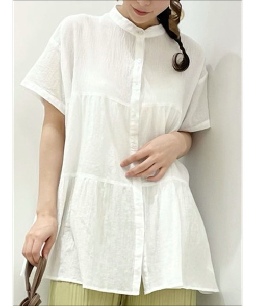 今季も注目のティアードデザインがキュートなブラウス。ほんのりシアーな素材感がさらに旬顔スタイルをメイクします。リラックスして着られるシルエットで取り入れやすいのもうれしいポイント。ベーシックなカラーリングでどんなボトムスとも相性抜群です。