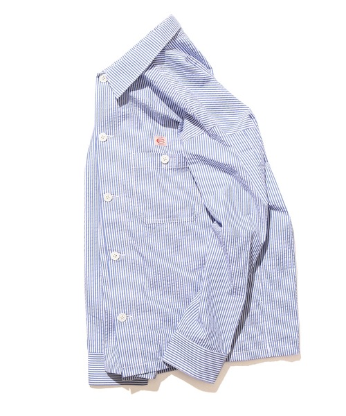COWDEN/カウデンからCOWDEN サッカー CPO シャツが新登場! 肌触りが良く、生地の表面にシアサッカー素材を使用することで、夏でもさらっと着て頂けます。 デザインはCPOシャツを採用し、シャツジャケットとして着ることが出来るアイテム。 オールシーズン活用できます。 胸元のワンポイントロゴが良いアクセントになっています。 シンプルにデニム合わせやコックパンツとの相性抜群◎ 女性の場合はロングスカートやフレアパンツなどでスタイリングをするのがおすすめです。 【COWDEN/カウデン】 1950年代を中心にアメリカの独立系ブランドのひとつとして、カバーオール、オーバーオールなどのワークウエアを中心に展開していたCOWDEN。1966年にBIG YANK、CampusとともにInternational Shoe Company社に吸収され、その後、NEW JERSEY州のBIG YANK LLCの傘下にあった時代を経て現在に至ります。ワークウエアとしての機能性を追求し、それ故どのアイテムもワークウエアとしてのアイデンティティを持ちながら、洗練されたシンプルで機能的なデザインが特徴です。COWDENのプロダクツは、いつまでも変わることのない普遍的なそのコンセプトをとおして、今も身に付けている人の魅力をそのままに表してくれます。