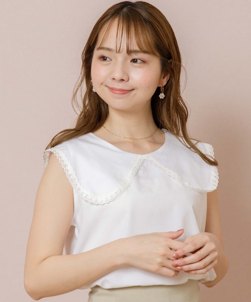 可愛らしさを引き立てるトレンドのビッグカラー。大人かわいいセーラーカラーノースリーブブラウスが登場♡滑らかな素材感とレースパーツを襟にあしらい品の良い印象の春夏ブラウスに。大き目の襟が華やかさをプラス。肩先まで襟あるのでさりげなく肩をカバーします。1枚で着ていただくのは勿論サロペットのインナー使いやカーディガン等の羽織と合わせて襟を出してきていただくのもおすすめです!【お買い物を上手にお楽しみいただくためのPOINT2つ】◎ 購入ボタン横の ♡ (ハートマーク)をクリック! 完売カラーの再入荷通知、残り1点の通知、セールの通知を受け取れます。 (クリックまたはタップで商品のお気に入り登録♪)◎ ショップのトップページにある ♡ (ハートマーク)「お気に入りショップに追加」をクリック! 新商品や再入荷等、いち早くブランドのお得な情報を受け取れます。 (ブランドのお気に入り登録♪)