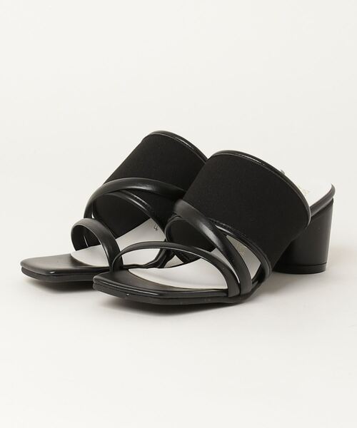 安定感のあるヒールと夏らしいデザインのスクエアサンダル!