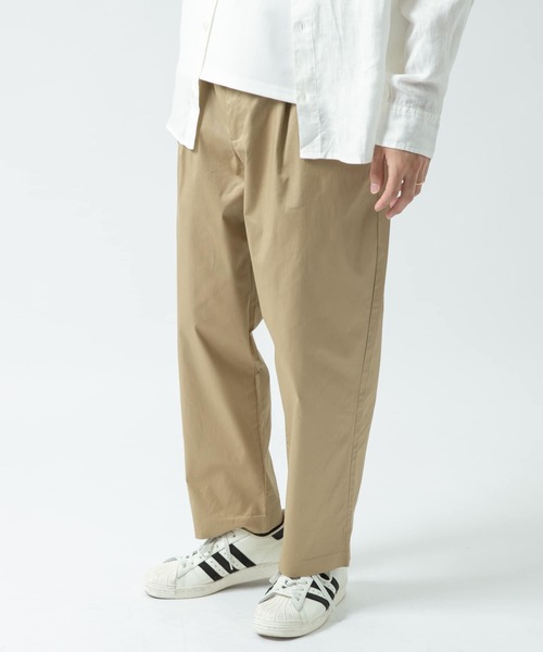 腰周りにタックを入れることでボリュームを持たせ、足元へ向けてテーパードを利かせたメリハリのあるシルエットが特徴。 シンプルなデザインでツイルのようなコシがある生地は幅広いコーディネートと相性が良くワードローブに入れていきたい一着です。 ※この商品は素材の特性上、長時間日光に当たったり、汗・水・摩擦等により色落ち・色移りをする恐れがありますので、ご着用・洗濯などの際は、充分にご注意ください。 ※この商品は、水洗いで多少縮むことがあります。 ※その他お取り扱いに関しましては、商品に付属のアテンションタグをご覧ください。 ※商品画像は、光の当たり具合やパソコンなどの閲覧環境により、実際の色味と異なって見える場合がございます。予めご了承ください。 ※商品の色味の目安は、商品単体の画像をご参照ください。 ▼お気に入り登録のおすすめ▼ お気に入り登録商品は、マイページにて現在の価格情報や在庫状況の確認が可能です。 お買い物リストの管理に是非ご利用下さい。 ----------------------------- 透け感:なし 伸縮性:なし 裏地:なし 光沢:なし ポケット:あり -----------------------------