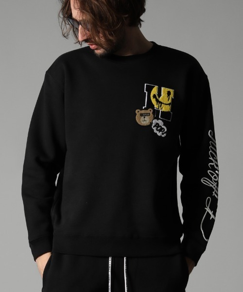 モデル182cm B:89cm W:73cm H:90cm モデル着用サイズ M.GRY/4 BLK/3 風合い柔らかなT/C裏毛起毛 フロントにオリジナルサガラワッペンでパッチワークデザイン 左袖にフォームプリントが入ります。 ※画像の商品はサンプルです。 実際の商品と仕様、加工、サイズ、素材が若干異なる場合がございます。 ※生産の都合上、商品の納期が変更、また生産中止となる場合がございます。