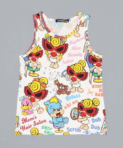 MINIちゃんのヘアサロン!?今シーズンの新柄、ママを真似してお友達のヘアをセット!?MINIヘアサロンの総柄MINI-TOCOのタンクトップはストレートシルエットになっているのでユニセックスで着回しの聞くアイテムです
