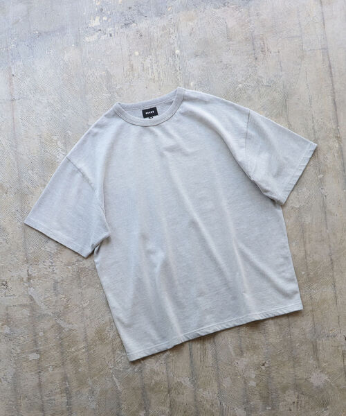 新鮮なシルエットと快適な着心地 リサイクルポリエステルと綿を混紡した生地を使用したルーズフィットのTシャツ。メランジ感が特徴的な、肉感のあるヘビーウェイトの天竺生地を使用しています。身幅と肩幅にたっぷりとゆとりのあるルーズシルエットをベースに、袖丈を通常のTシャツよりも長めにすることで新鮮なシルエットに仕上げています。 Model:H170cm W53kg Size:M ※商品の色味は白背景商品単体で撮影した画像をご参照ください。 ※屋外撮影による光の当たり具合やパソコンなどの閲覧環境によって、実際の色味と異なって見える場合がございます。予めご了承ください。