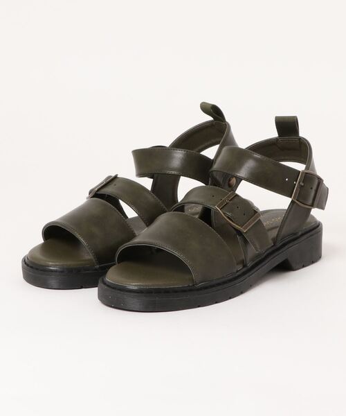 ダブルベルトがクールに映える、スタイリッシュなサンダル。 アンクルベルトはスナップボタンタイプになっているので、簡単に脱ぎ履きすることが出来ます。 素足でシンプルに履くのはもちろん、ソックスと合わせたコーディネートで足元のおしゃれも楽しめる1足。