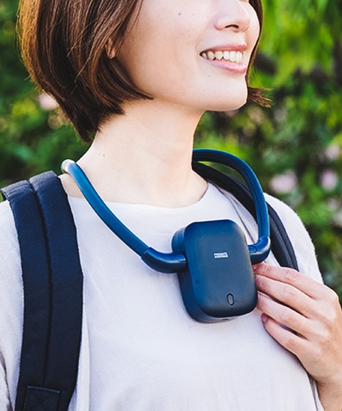PRISMATE(プリズメイト) フレキシブル ハンズフリーファン 海や山、スポーツ、外回りや配達、太陽の下懸命に働くあなたまで幅広くサポート。首掛け部分のシリコン素材はしっかりと首へフィットし、風を逃がさず涼しさを持続してくれるミニ扇風機。肌に触れるものだから、本体には抗菌加工を施しました。丸みを帯びたデザインはシンプルで、誰にでも馴染みます。夏の暑い日を支えてくれる1台です。 ■運動時や作業中でもご使用いただけるほどのフィット感を実現。レジャーはもちろん、お仕事までサポート。心地よい風をどこへでも持ち運べます。 ■通勤時や外回りではハンズフリーとして。オフィスではフレキシブルなネックストラップ部分を利用し、デスクへの設置も可能。お手持ちのモバイルバッテリーやパソコンなどでいつでも充電いただけます。 ■ネックストラップ部分を取り外して本体をベルトに差し込むと、服の中へ風を送ることができます。2通りのハンズフリーで暑さ対策にバッチリ。うれしい使い方の提案です。 ■丸みを帯びた本体は柔らかい印象ながら非常にシンプル。誰にでも馴染みやすいデザインです。 ■誤作動防止のダブルクリック。ボタンを2回押すと電源がONになります。「カバンの中などで勝手に電源が入っていた」など、もう心配ありません。 ■SIAAマーク取得。羽根を除く本体プラスチック部に銀系抗菌剤を練りこみ、無加工製品との比較では抗菌率99.9%を実現。 セット内容:本体(リチウムイオン電池内蔵)、ネックストラップ、USBコード、取扱説明書(保証書付) 重量:127g 電源:DC5V 0.6A(充電時) 消費電力(約):3W 充電電池: リチウムイオン電池 3.7V、2000mAh 充電時間(約):4時間 電源コード(約):USBコード750mm 風量調節:3段階(弱/中/強) 連続使用可能時間(約):6時間(弱)~3時間(強) (扇風機) カラー展開:白・ネイビー