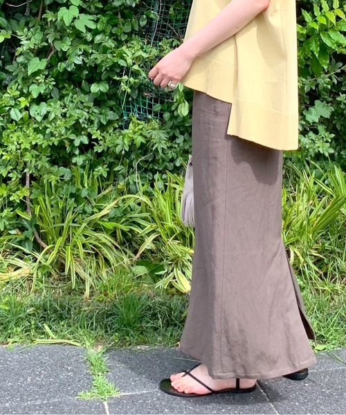 リネン混でシーズンムード高まるナロースカート●デザインIラインシルエットとバックスリットが大人の女性らしさを演出してくれるナロースカート。ウエストゴムと程よいゆとりがあるのシルエットでストレスフリーな履き心地。きれいめからカジュアルスタイルまで幅広く楽しめる万能な1枚です。●おすすめコーディネートボリュームのあるトップスに合わせたコーディネートがトレンド感が出てオススメ。足元は、スニーカー合わせや女性らしいストラップサンダルが相性◎●素材表地:麻51% レーヨン49%裏地:ポリエステル100%・ナチュラルで柔らかな風合い・通気性に優れ滑らかな肌触り洗濯方法:手洗い透け感:なし裏地:あり(ホワイトのみ)伸縮性:なしウエストゴム:あり生地の厚さ:普通光沢感:なしファスナー:ありポケット:あり【スタッフ着用コメント】《MEGUMI》身長:159cm/細身/普段サイズ:S/着用サイズ:36サイズ感:窮屈感なく着用できるサイズ感です。素材感:ソフトでナチュラルな風合い。心地良い素材感でした。着心地:後ろスリット入りで動きやすかったです。シルエットはストレートですっきり見えしますが、ウエストゴム仕様でタイト過ぎないため、長時間の着用もストレスなく着用できそうです◎《Chihaya》身長:150㎝/普通/普段サイズ:SorM/着用サイズ:36サイズ感:ウエスト周りはピッタリしますが後ろゴムなので楽ちんでした。ローヒール合わせがおすすめです。素材感:涼しげなレーヨン×麻素材で、白でもあまり透けを気にせず履けました。着心地:スリットがきいているので。タイトでも足さばきよく履きやすいです。《MIKA》身長:162cm/普通/普段サイズ:M/着用サイズ:38サイズ感:腰が張っている体型ということもあると思いますが、腰幅はいつものリヴの38サイズよりも、ややタイトな印象。ウエストはジャストサイズでした。素材感:さらりとしたリネン素材。着心地:裏地付きで透け感もなく、夏も涼しく着られそうです。《NAMI》身長:161cm/普通/普段サイズ:M/着用サイズ:38サイズ感:すっきり、ややタイトで女性らしく綺麗なシルエットです。素材感:夏に快適なさらりとしたドライタッチな肌触りです。着心地:ウエストゴムで締め付け感なく、楽な着心地です。《SHIZUKU》身長:160cm/普通/普段サイズ:M.L/着用サイズ:38サイズ感:ストレートシルエットでタイトすぎないサイズ感です。後ろにスリット入りで足さばきも良かったです。素材感: 麻が入っているので、さらりと通気性のいい素材感です。着心地: 裏地がコットン素材で、化繊が入っていないので夏にもピッタリです。==============================【注意点】※画像の商品は光の照射や角度、お使いのモニター環境により、 実物と色味が異なる場合がございます。 あらかじめご了承下さいませ。==============================【お買い物をもっと便利に楽しく♪】『♡』をクリックでお気に入り登録・「商品のお気に入り登録」で・・・ラスト1点や再入荷の通知が届きます。登録して頂いた商品だけが対象となる、あなただけのタイムセールが開催されることも!・「ブランドのお気に入り登録」で・・・新商品や再入荷など、いち早くブランドのお得な情報を受け取ることができますので、ご登録をおすすめします! ==============================