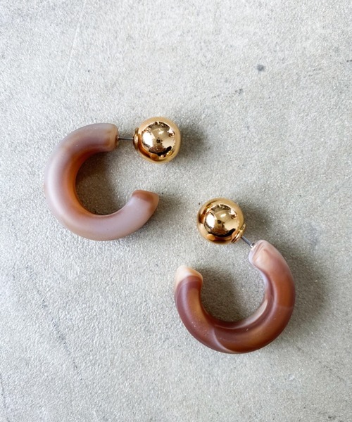 ◆コロッとしたデザインのマーブルピアス POINT どんなスタイリングにも合わせやすく、 シンプルながら存在感のあるピアス。 奥行きのあるマーブルカラーに後ろ姿も抜かりない、 ゴールドのキャッチが華やかさをプラスしてくれます。 いつものコーディネートをブラッシュアップしてくれるピアスです。 ---------------------------------------------------------- ▶商品のお気に入り登録 完売カラーの再入荷通知やラスト1点の通知など お得なプライスダウンの情報も受け取ることができます。 ぜひご登録ください◎ ▶ブランドのお気に入り登録 新商品や再入荷など、ブランドの最新情報を いち早くお知らせします! ぜひご登録ください♪ ---------------------------------------------------------- ※生産工程上、マーブル模様に個体差がございます。予めご了承ください。 ※撮影環境の光や角度により、実物と色味が異なる場合がございます。 また表示のサイズ感も実物とは若干異なる場合もございますので、予めご了承ください。 ※着用、お取り扱いの際は、商品に付いている品質表示を必ずご確認ください。