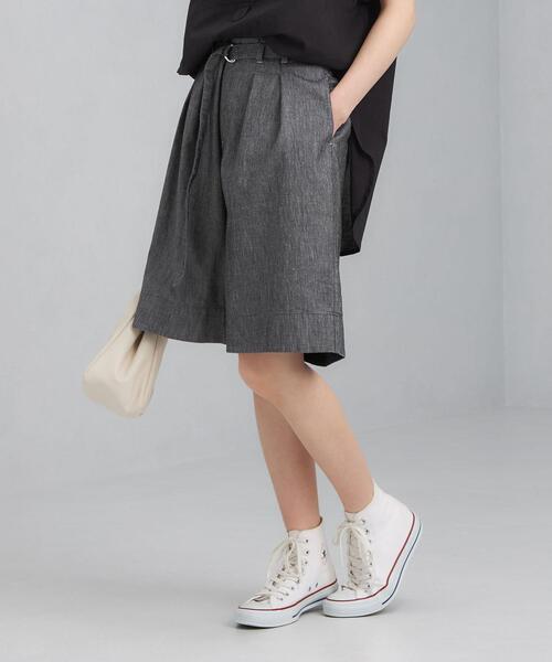 ◆カジュアルムードにぴったりの、デニムライクシリーズが登場!◆ デニム調の素材を使用した、タックデザインのハーフパンツ。 麻混ならではのナチュラルな風合いがデイリーシーンを盛り上げます。 ウエストのベルト×Dカンのメタル調ディテールがさりげないアクセントに◎ 大人っぽく穿きこなしていただける用、短すぎない丈感と程よく脚から離れたシルエットに拘ってお作り致しました。 身体馴染みの良い生地×ウエストバックゴムデザインなので穿き心地も快適♪ トップスをすっきりとインした着こなしがおすすめです! 【POINT】 ・コーディネートにメリハリをプラスするウエストベルト ・ハイウエスト見えするウエストデザイン こちらは同素材で ・ワイドパンツ(品番:3614-139-2202) ・オールインワン(品番:3626-139-2800) もございます。 ---------------------------------- 推奨着用シーズン:夏 ケア方法:手洗い・ドライクリーニング可 裏地:なし 透け感:オフホワイトのみややあり(インナー選び必要) ---------------------------------- ▼お気に入り登録のおすすめ▼ 気になる商品は「お気に入り」登録がおすすめ! お気に入り登録商品は、マイページにて現在の価格情報や在庫状況の確認が可能です。 お買い物リストの管理に♪是非ご利用下さい。 ※こちらの商品は麻素材を使用しております。多少のシワやネップが見られますが、こちらは素材特徴の一つとなります。他の製品では味わえない自然な風合いをお楽しみ下さい。 ※画像の商品はサンプルです。実際の商品と仕様、加工、サイズが若干異なる場合がございます。 ※撮影時の照明の関係により、実際よりもやや明るく見える場合がございます。お色味に関しましては詳細画像にてご確認ください。またパソコンなどの環境により、製品と画像のカラーが若干異なる場合もございます。予めご了承ください。 ※こちらの商品は麻素材を使用しております。多少のシワやネップが見られますが、こちらは素材特徴の一つとなります。他の製品では味わえない自然な風合いをお楽しみ下さい。 店舗へお問い合わせの際は、全国のgreen label relaxing各店舗まで下記の品名/品番をお申し付け下さい。 品名:SC デニムライク ハーフPT 品番:3619-139-0659 #ショート#ショーツ#短#膝上#ワンポイント#カジュアル#ボトム