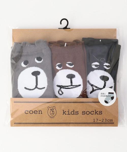 大人気アイテム!足元に視線が集まるキュートなソックス【お得な3足セット】 愛らしいコーエンベアのフェイスモチーフ靴下3足セット。 それぞれ表情が異なり、その日の気分にぴったりの一足を選べるのが魅力。 カラーは落ち着いていて、幅広い着こなしに馴染みます。 足裏に名前を書けるネーム付きで、お着替えのある日にも安心です。 対応サイズ:17cm~23cm