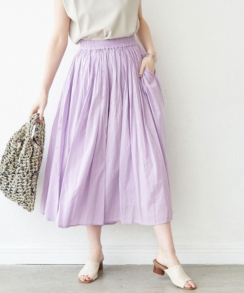絶妙なシルエットバランスで着ぶくれを防止。【素材感】・柔らかなインド綿を使用。【デザイン・シルエット】・ソフトでしなやかな風合いを楽しめる、インドコットンのガウチョスカート。・ボリュームシルエットながら、ウエスト周りはすっきりしているのがポイント。【カラー】・ベーシックカラーにポイントカラーを交えた、全4色展開。【スタイリングポイント】・プリントTシャツなどに合わせて、リラックスしたスタイルに仕上げるのがおすすめ。-----------------------------裏地:あり透け感:なし伸縮性:なし生地感・厚さ:普通ポケット:ありウエスト:ゴム季節:春・夏-----------------------------※撮影時の光、お使いのモニター環境によって色の見え方が違う場合がございます。:□■着用レビュー■□〈スタッフA〉身長:156cm普段の着用サイズ:36(S)着用サイズ:38サイズ感:ゆとりのあるサイズ感なので、足のラインは響きにくく楽に着れます。丈は足首隠れる長さです。素材感:柔らかなインド綿素材なので、肌触り良く着心地もいいです。着心地:スカート見えするパンツなので、動きやすく楽に着れます。おすすめコーデ:少しボリュームがあるので、長め丈のトップスを合わせ前だけインしてスッキリと着用するのがオススメです。〈スタッフB〉身長:161cm普段の着用サイズ:トップス38(M)、ボトムス36(S)~38(M)着用サイズ:38サイズ感:161cmで足首が見える位の着丈。パンツですがボリュームがあるので、スカートの様なシルエットで着用できます。素材感:インド綿を使用した柔らかい肌触り。着心地:柔らかく肌あたりが良い。裏地付きで下着のラインなどは透けません。おすすめコーデ:ボリュームのあるシルエットなので、トップスインでバランスをとってコーディネートするのがオススメです。