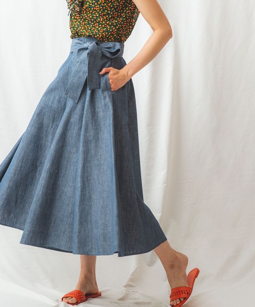 ダンガリー調の素材を使用したカジュアルなフレアパンツ。裾に向かってたっぷりと分量を出したスカート見えするシルエットがフェミニンな印象を高めます。トップスインでもサマになるリボンベルトが付属しており、外せばすっきりとしたウエストラインに。また、後ろのみゴム仕様なので、前をすっきり見せつつ、快適なフィット感が得られます。・裏地なし・サイドポケットあり・透け感なし・サイズ展開は1(M)9号【 NARA CAMICIE 】イタリア生まれのシャツ・ブラウスブランドNARA CAMICIE(ナラ カミーチェ)レディースを中心に、イタリアならではの豊富なデザインと多彩なカラーバリエーション、女性らしく見せる立体的パターンで美しいシルエットが特徴です。シャープなシャツからフリルやレースをあしらったブラウスはスーツのインナーやオフィス、フォーマルなコーデと幅広く活躍!●お買い物をお得にもっと楽しく!上手な活用方法>>>▼商品のお気に入り登録▼完売カラーの再入荷通知や、ラスト1点の通知、プライスダウンしたセール通知も受け取ることができます。▼ブランドのお気に入り登録▼新作や再入荷等、いち早くブランドのお得な情報を受け取ることができます。