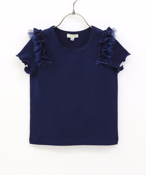エレガントなショルダーフリルが立体感ある半袖トップスカラーバリエーションが豊富なpanpantutu定番人気のフリルショルダートップス。無地ベースに、肩部分にはコットンとチュールのフリルを重ねてボリュームを。ワンポイントにプチリボンをトッピングして女の子らしさアップ。柔らかい着心地の良いよく伸びるストレッチ生地。合わせるだけで、いつもと違うちょっぴりドレッシーなスタイルに。~サイズ展開80~150cm~▽小さいサイズはこちらを検索してね80~100cm:57325309【panpantutu/パンパンチュチュ】~小さなレディの宝物になるお洋服~東京・代官山で人気の子供服ブランド。pan-pan tutu(パンパンチュチュ) はフランス語でおしりぺんぺん!ふわふわチュチュにお花やリボン…上品かつクラシックなスタイルに、女の子が大好きなモチーフをバランスよくとり入れた『スイートシックな世界』を提案しています。