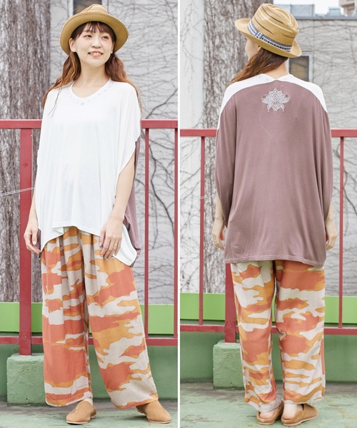 大自然の中、満天の星を眺めに行こう+.**…━☆★ そんなイメージでデザインされたオーバーサイズトップス。 襟ぐりの銀糸を使った「満月」「三日月」「星」の刺繍でエキゾチックな雰囲気に。 ストレッチ感のあるなめらかな素材で着心地も◎ ゆったりとしたドルマン袖でサイズレスに着られる万能アイテムです。 ※こちらの商品は1点1点職人による手作りとなります。その為、形や色合い・模様など若干異なる場合がございます。あらかじめご了承ください。 Amina Collection Co.,LTD.