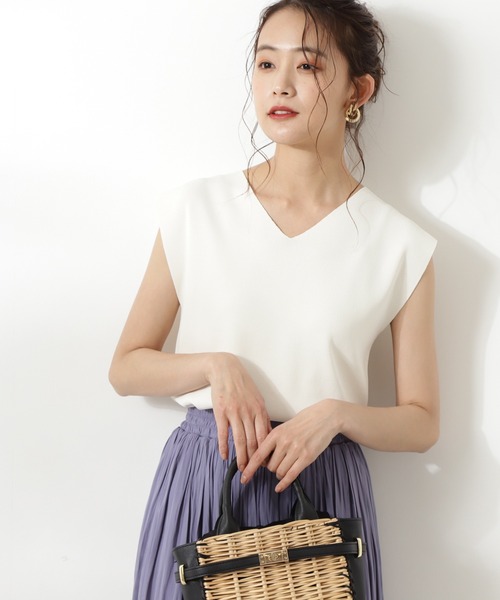 N.で定番人気の総針Vネックニットよりノースリーブが登場。シャリ感のある糸をストレッチ性のあるしっかりした編地で仕立てたことで、ピリングも起きにくく末永く着用できるアイテムです。ハイゲージのフラットできれいな表面感が大人な印象を与えてくれます。顔まわりをシャープに見せるVネックに、体のラインを拾いすぎないきれいめなシルエットです。やや肩先をおおった袖丈も着やすさのポイントです。シンプルなデザインなので、ボトムを選ばずON/OFFで着回しできます。ご自宅でお洗濯ができ、デイリーに気兼ねなくご利用いただけます。※お洗濯の際は、付属の注意書きや商品についている品質表示をご確認いただきますようお願いいたします。