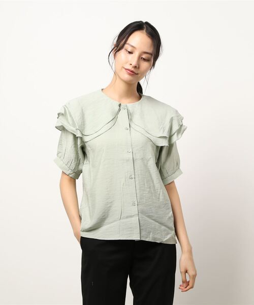 着こなしに新鮮なかわいらしさを演出する2枚衿ブラウス。トレンド感のあるボリューム袖がガーリーな着こなしを後押しします。ほどよいシルエットですっきりとした印象に。甘すぎない優しいニュアンスカラーで取り入れやすく、大人女子にもおすすめです。