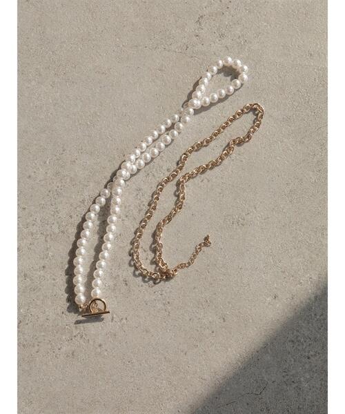 煌めくバールビーズとメタルチェーンを組み合わせた2連ネックレス。顔まわりを華やなに彩る存在感のあるルックスが、女性らしいエレガントさを一層引き立たせます。デイリー使いはもちろん、デートやパーティ、ビジネスシーンにとオンオフ問わずは幅広く活躍してくれるアイテムです。● AMERICAN HOLIC ● (アメリカンホリック)大人の女性の毎日を軽やかで豊かにするブランド。カジュアルなのにオシャレ、コーディネートも楽。ONにもOFFにも等身大で楽しむオトナの日常着をテーマに、スタイリッシュかつ自然体を楽しめるカジュアルスタイルを提案します。 ▼ 商品のお気に入り登録がおすすめです ▼商品ページ内のハートマークをクリック。完売時の再入荷や、最後の1点の通知、コーディネート画像がアップされたとき、お得なお値下げの際の通知を受ける事ができます。【お知らせ】ページでも通知が確認できます。