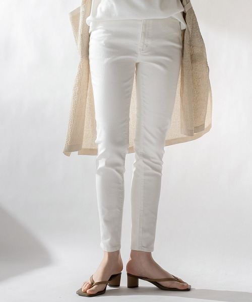 足にぴったりとフィットする、スキニーシルエットAVA。ヒップアップを助ける後ポケット位置や袖口のバランスにこだわりました。ホールド力のある美脚を叶えます。フィット感とホールド感を感じる細身パターン。デニムと無地の素材によって微妙にサイズを調整しています。今シーズン多くみられる、オーバーシルエットのトップスにマッチします。【インディゴ】接触冷感の機能性をもたせた90Zストレッチデニム素材。【ホワイト・ブラック】ストレッチ性に優れた80Z 綿・ポリウレタン素材。■model:168cm 着用サイズ:M※画像の商品はサンプルとなりますので実際の商品と仕様、加工、サイズが若干異なる場合がございます。※お客様のモニター環境により実際のお色と多少異なる場合がございます。