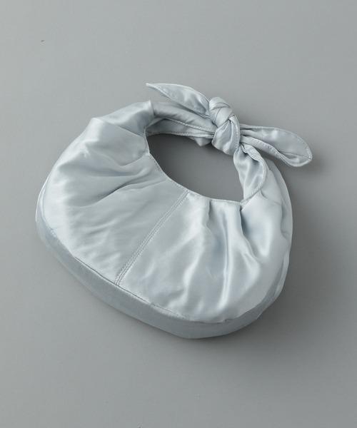 シルク100%で仕立てたトレンドの形のハンドバッグ。 品のあるツヤ感が引き立つシルク素材を使用しています。 ノットデザイン(結び目)がオシャレなので持つだけで旬なスタイリングへと後押ししてくれます。 結び方で次第で持ち手のサイズ感を調整していただけます。 内側ポケットが付いており、収納力も◎ ミニ財布やポーチ、スマートフォンなども入ります。 ギフトにもおすすめです。