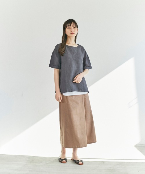 Tシャツ感覚で着こなせるプルオーバートップス 麻のサラっとした手触りに、しなやかなレーヨンをプラスした清涼感のある素材で仕上げました。肩を落としたドロップショルダーが今季らしい抜け感を表現。裾サイドにはスリット入り。ショルダーのボタンディテールがポイントになっています。 二の腕のカバーになる半袖丈と、首周りをすっきりと見せてくれるクルーネックで華奢見え。 デニムパンツにフラットシューズを合わせたカジュアルなコーディネートや、フレアスカート、プリーツスカートを合わせてフェミニンなコーディネートに仕上がります。 キャミワンピースのインナーとしてレイヤードしたコーディネートもおすすめ。 インナーにタンクトップやキャミソールをレイヤードしても今年らしいスタイリングをお楽しみいただけます。 シンプルなデザインはお出かけシーンやオフィスカジュアルなど幅広いシーンで活躍間違いなし。 ※790-72004とセットアップ対応。 【色展開】 ・ダークグレー ・モカ ・イエロー(黄 黄色) 【サイズ展開】 フリー 「A.T」 A fresh new look for our rebranding. “心地よいモード” カジュアルとモードをバランスよくミックスした、 大人の女性が心地よく自由な気分で着られる服。 流行に左右されず、でもいつも新鮮に見えて、 誰かと同じじゃなく、いつも自分でいられる。 今シーズン、リニューアルしたATで、 あなたらしさに寄り添う装いを見つけて。 【お買い物をもっとお楽しみいただくために】 ▼商品のお気に入り登録▼ A.Tの完売カラーの再入荷通知や、 ラスト1点の通知、プライスダウンしたセール通知も受け取ることができます。 ▼ブランドのお気に入り登録▼ A.Tの新作や再入荷等、いち早くブランドのお得な情報を受け取ることができます。 洗濯:手洗い可