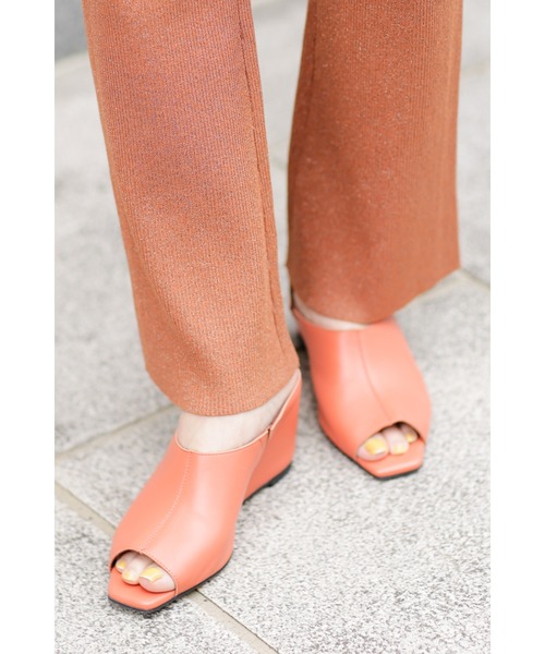 piu comoda・ピュ コモダより、女性らしいシルエットにこだわったウェッジソールタイプのミュールが登場。つま先がでるオープントゥに、足入れが楽なミュールデザインです。 甲を深めにおおっているので歩きやすさも◎軽量なのにソールにボリュームのあるデザインで、トレンド感のあるスタイルを作りやすいおススメの1足です。