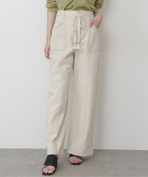 FREE'S MARTで定番のワイドデニムパンツ。ハイウエストに付属の生成りのリボンベルトがポイントになります。 今季はトレンドのパネル切り替えをプラスしてディテール感を取り入れました。 コットン素材で表現できる加工感で、こなれた風合いに仕上げています。 デイリーカジュアルにオススメです。 ※こちらの商品はSサイズの展開がございます。 ◆サイズ目安◆ Sサイズ→身長153cm~156cm ウエスト60cm~62cm) ●商品特性● 〇透け感: なし 〇生地の厚さ: 普通 〇裏地: なし 〇伸縮性: なし 〇光沢: なし 〇シルエット: スタンダード 〇インフォメーション〇 ★商品のお気に入り登録 登録すると、完売しても再入荷時に通知を受け取ることができます。 ほかにもお得な特典があるかもしれません♪ ★ブランドのお気に入り登録 新商品や再入荷などの情報を受け取ることができますので、是非ご登録ください♪