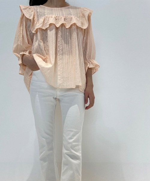 女性らしさ溢れる、旬なレースフリルブラウス。程よく透け感のある素材なので、真夏でも涼しげにご着用頂けます。デニムなどのパンツを合わせ、カジュアルダウンをさせるのもおすすめ。着るだけで今旬コーデが完成します。※表示される画像の色は、モニターやブラウザ環境等によって実際の商品と若干異なる場合がございます。※画像の商品はサンプルです。サイズ等の仕様に変更がある場合がございますので、予めご了承ください。《 お知らせ 》▼商品のお気に入り登録お気に入りアイテムの値下げ・再入荷・在庫1点などの通知を受け取ることができます。▼ブランドのお気に入り登録新商品や再入荷、セール、クーポン配布などお得な情報を受け取ることができます。※他のキャンペーンにより、期間中に価格が変動する場合があります。※セールは予告なく終了させていただく場合もあります。