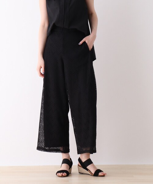 【デザイン】着こなしにインパクトを与えてくれるトレンドのレースパンツ。イージーな履き心地が快適な1枚です。トップスをインさせてロングガウンを羽織ったスタイリングやワンピースやチュニック丈のカットソーとレイヤードさせた着こなしもできます◎様々なアイテムに合わせやすいアイテムです。※ポケット数:横×2【生地感】柔らかくて、とても軽い肌触りです。伸縮性もあるので、履き心地を優しくフォローしてくれます。※裏地あり※ナチュラル(050)はやや透け感があるため、インナーの着用をおすすめします。モデル情報:身長166cm B80 W59 H86 着用サイズ:02(M)店舗へのお問い合わせ商品番号:741-62027●製品寸法:02(M):W64~70cm H80cm 股下62cm 前股上33cm 渡り幅33cm 裾幅30cm03(L):W67~73cm H84cm 股下63cm 前股上34cm 渡り幅34cm 裾幅31cm備考: