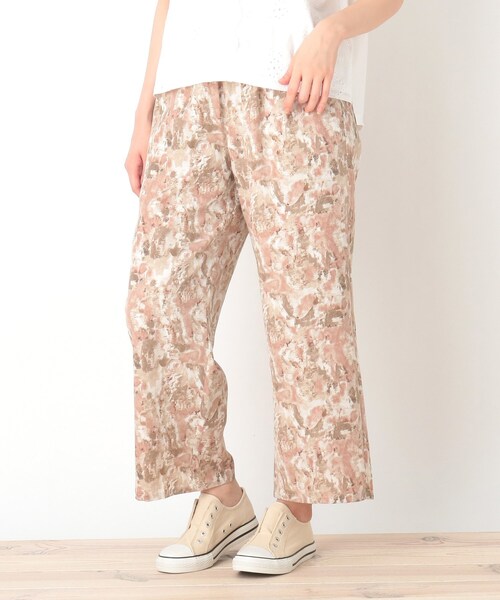 【デザイン】 お洒落な雰囲気を演出してくれるニュアンス柄を施したイージーパンツ。 ウエストはゴム仕様で快適に着用して頂けます。 シンプルなトップスに合わせるだけでスタイルの格が一気にあがります。 イエロー・ピンク・ブルーのカラーバリエーションで展開しています! ※ポケット数:横×2 【生地感】 やや薄手のポリエステル布帛。着心地は軽め、さらりとスムースな手触りです。 ※裾の約10センチ上あたりまで裏地あり 【サイズ】 小さいサイズSサイズあり。※01(S)サイズはWEB限定サイズです。 #CutieBlonde#Cutie#cutieblonde#cutie#キューティブロンド#キューティ#20代#30代 モデル情報:身長168cm B75 W58 H85 着用サイズ:02(M) 店舗へのお問い合わせ商品番号:256-62025 ●製品寸法: 01(S):W~78cm H104cm 股下63cm 前股上31cm 渡り幅33cm 裾幅24cm 02(M):W~81cm H106cm 股下64cm 前股上32cm 渡り幅34cm 裾幅25cm 03(L):W~84cm H108cm 股下65cm 前股上33cm 渡り幅35cm 裾幅27cm 備考: