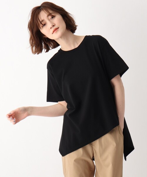 【JET LOSANGELES】大胆なイレギュラーヘムの切り替えでアシンメトリーデザインがポイントのデザインTシャツ。1枚でデニムにあわせるだけで決まるお洒落な1枚です。前はハンカチーフヘム、後ろは重なったようなデザインでヒップまで隠れるサイズ感です。前だけINしても後ろのディティールがポイントになってくれるのでスタイリングの巾も広がります。【生地感】ベーシックに着易い30/-天竺に洗いをかけてより身体に馴染みやすい風合いに仕上げました。こちらの商品は主に夏に着用いただける商品です。モデル情報:身長166cm B80 W59 H86 着用サイズ:04(M)店舗へのお問い合わせ商品番号:C80-12065●製品寸法:04(M):着丈73cm B104cm 袖丈17cm 肩幅45cm備考: