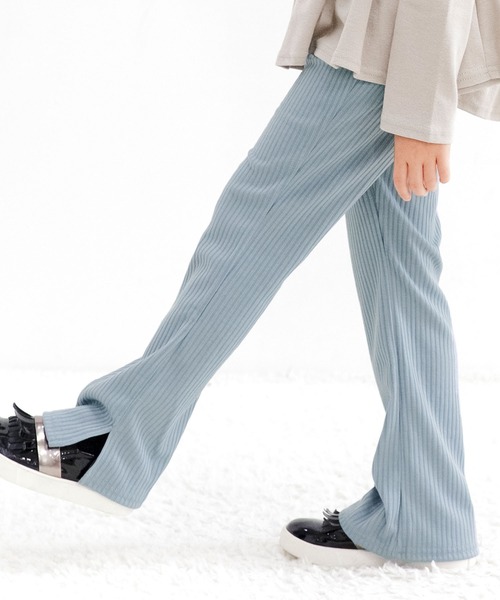 ■季節を問わない、オールシーズン穿けるリブ地フレアパンツ Beeの大人気アイテム! 裾に向かって広がる美脚効果抜群のフレアシルエットに サイドはスリット入りでトレンド感もプラス◎ 元気に動きまわるアクティブキッズにもオススメな抜群の伸縮性で 動きにフィットし、さらっとした穿き心地が◎ シンプルなデザインなので、合わせるトップスに迷うことなく着用できる万能アイテムです! カラバリ豊富で、お友達や姉妹でおソロコーデもしたくなる★ コーデに取り入れるだけで、簡単にトレンドのノームコアスタイルに大変身! ■ポイント ・伸縮性抜群のストレスフリーな履き心地 ・ウエスト総ゴム ・サイドスリット入り ・どんなコーデにも合わせやすいシンプルデザイン ・豊富なカラーバリエーション