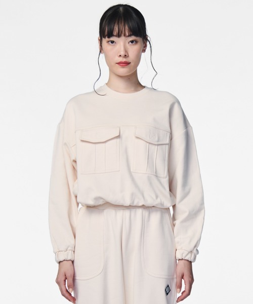 Design&Coordinate ●カーゴポケットクルーネックスウェット ●袖・裾はゴム入りなので、オーバーサイズデザインながら女性らしいシルエットになります。 ●フェミニンなプリーツスカートのコーデやゆったりしたボトムとも相性は◎ ●シンプルながらディテールにも凝っているので、ワンマイルウェアとしても活躍します。 ●シャンパンカラーはミリタリーテイストながら女性らしいカラーになります。 Material リサイクルコットン 60% RECYCLED COTTON 40% BCI COTTON About PIPING HOT FUTURE オーストラリア発サステナブルファッションブランド「PIPING HOT FUTURE] 1975年オーストラリアのトーキーで設立されたサーフブランド「パイピングホット」は、「サステナビリティ」にコミットします。 最小限のエネルギーと水を使用し廃棄物の排出を抑えるリサイクル素材を全商品に採用することで、地球と海の保全に努めています。