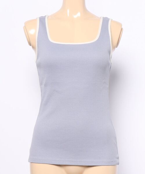 2021 春夏アイテム インにアウトにシーズンレスで着回せるタンクトップは配色デザインがポイント。肌馴染みの良いやわらかな生地で仕立てているので着心地も快適です。すっきりと開いたネックラインが顔周りを明るく見せてくれるのもポイント。ボディラインに沿うシルエットと細リブでスタイルアップも狙えます。トレンドのシアートップスにも相性抜群。・伸縮性あり