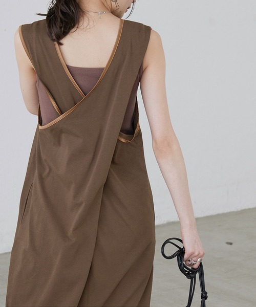 リラックスワンピースで大人のこなれ感を■デザインさっと着るだけでこなれ感がでるシンプルなノースリーブワンピース。ハリのあるコットン生地を使用し、オンオフ問わず使いやすいアイテムに仕上げました。リラックス感のあるシルエットは体型カバー効果も◎バッククロスや、異素材でのパイピングデザインがアクセントになり、シンプルな中でも周りと差をつけるさりげないお洒落さをプラスしました。また、アームホールを広めにとることで中に合わせるインナーの幅が広がり着回しも自由自在に。ロングシーズン着用いただける万能アイテムです。■スタイリング組み合わせ次第で様々な表情のコーデをお楽しみいただけます。トレンドカラーのノースリーブトップスをインすると遊び心のある印象に。イージーパンツを合わせると縦のラインを強調した、リラックススタイルが完成します。春はジャケットやスプリングコート、デニムを履いたレイヤードスタイルもおすすめです。足元はサンダルやパンプス、スニーカーなどシーンに合わせたスタイリングをお楽しみください。※屋外での撮影画像は、光の当たり具合で色味が違って見える場合がございます。また、ご覧になっているデバイスやモニター環境によって、実際の色味と多少異なって見える場合がございますので予めご了承をお願い致します。■POINT・大胆なバッククロスデザインと艶素材のパイピング・裾に入ったスリットがこなれ感をプラス≪お買い物をお楽しみいただくために≫▼商品のお気に入り登録完売カラーの再入荷通知や、ラスト1点の通知、セールの通知も受け取ることができます。▼ブランドのお気に入り登録新商品や再入荷等、いち早くブランドのお得な情報を受け取ることができます。※取り扱いについては、商品についている品質表示でご確認ください。