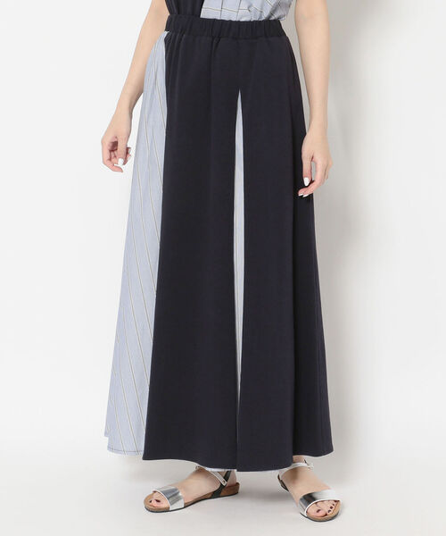 コットン×ストライプのコンビネーションスカートが登場。 異素材のブロック切り替えは、遊び心のあるデザインで、 夏に向けて1枚で目を引くアイテムに仕上がっています。 前後サイドにはボックスタック、右サイドはフレアーラインで アシンメトリーなデザインや柄合わせをお楽しみいただけます。 また、ウエストは総ゴム仕様でに好きな位置に柄が出るようにウエストを回して、 トップスとのバランスでマルチに着用いただけます。 長めの丈感で素足でも抵抗なく履いてていただけます。 ボリューム感のあるシルエットは身体にまとわりつかず、暑い夏でも快適な着心地です。 【お買いものをお楽しみいただく為に】 ★商品のお気に入り登録 完売カラーの再入荷通知や、ラスト1点の通知、セールの通知も受け取ることができます。 ★ブランドのお気に入り 登録新商品や再入荷など、いち早くブランドのお得な情報を受け取ることができます。 【MARECHAL TERRE / マルシャルテル】 2012年の春に誕生した 新生ドメスティックブランド“MARECHAL TERRE(マルシャル テル)”。 「トラッドを遊ぶ」トラッドマインドにカジュアルを、エレガントをやさしく取り入れ、さりげなくオシャレを、コーディネートを楽しめるちょっぴり大人のアイテムを提案してくれます。 ■お使いのパソコンのモニターによって、実物商品とカラーが異なって見える場合があります。誠に申し訳ございませんが、ご理解下さいます様お願いいたします。 ■当ショップの在庫数は直営店舗の商品も含まれています。在庫数が日々変動する為、ご注文頂いた時点で在庫が完売になっている場合がございます。 ■サイズ表は、製品の生地や織りなどの特性により、多少の誤差はございます。予めご了承ください。 ■初期不良以外の返品・交換は出来兼ねます。ご了承ください。