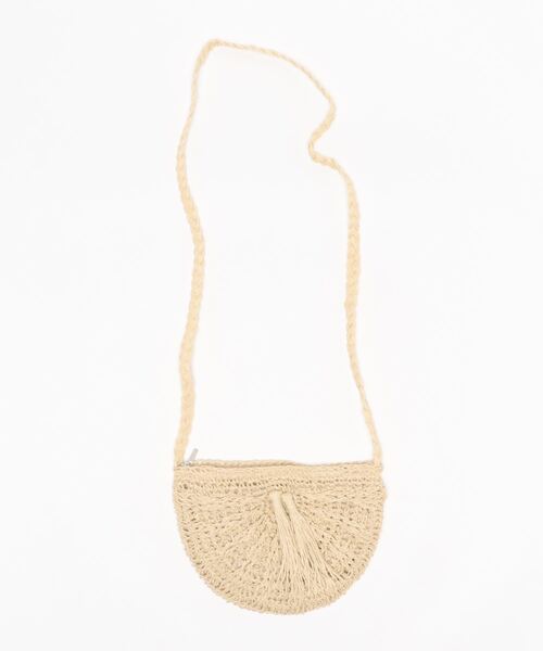春夏にぴったりなクロシェ編みショルダーバッグ。半月型のコロンとした形とフリンジが可愛い。ペーパー素材なので、とても軽い仕様となっています。※こちらの商品のショルダー紐は編み方により、1点1点に個体差があります。風合いとして、あらかじめご了承ください。