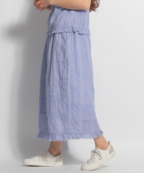 セットアップにできるシアーなイージーパンツ 透け感のあるシャドーチェック柄のパンツ。 裾のフリンジがさりげないアクセントになり、シンプルながらもデザイン性のある着こなしを楽しめます。 軽やかでふんわりとした履き心地が特徴。 シリーズのブラウスとセットアップにするのもオススメ。 【ichi(イチ)】 「着て体に馴染み、色あせていくことで自分らしい色に変わっていく服、着続けることが喜びとなる服」 九州福岡での生活を拠点にして生み出されるブランド「ICHI(イチ)」。 着て洗うことでテキスタイルの表情や風合いの変化を楽しめる一着。 生地の変化と同時に、服が自分の体のラインに馴染む心地よさを感じてください。