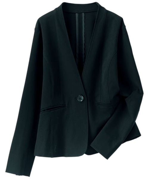 「色あせしにくく」ずっと上品。深みのある色をキープ! 首元をすっきり見せるVネックジャケットです。 パンツだけでなく、ワンピースとも好相性な丈感です。 ブラウスやシャツと合わせたオフィススタイルはもちろん、 ワンピースやフェミニンなトップスを合わせて、 卒業式・入学式やお呼ばれの席にも活躍します。 防シワ加工&色あせしにくい仕様なので、 お手入れもラクラク簡単なのが魅力的です。 <退色しにくい「原着色糸」を使用/色のキープ力が圧倒的!>※ ◆日なたに干しても色あせしにくい ◆洗濯しても色落ちしにくい <退色しにくい糸の秘密の構造> 繊維の芯から黒い糸を使用しているので、 繰り返し洗っても色があせにくい※のが特長。 深みのあるクールな黒をキープ。 ●防シワ素材 ●ストレッチ素材 ●裏地無 ●袖口スリット(6.5cm) ●ポケット有り ●ボタン有り ※使用状況、使用環境により効果は異なります。 サイズ:M、L、XL(LL) カラー:ブラック(黒)、ネイビー ※嬉しいプチプライス!まとめ買い&色違い購入もオススメです。 --------------------------------------------------------------------- ※サイズ寸法は実際の寸法と多少の誤差がある場合がございます。 ※ご覧いただいているPC/WEB環境や撮影環境により、 多少色味が異なって見える場合がございます。 【お買物をよりお楽しみいただく為に】 ▼商品のお気に入り登録をおすすめします♪ 『♥をクリック!』 完売カラーの再入荷やラスト1点の追加、 セールの際の通知を受ける事ができます。 ブランドのお気に入り登録もご一緒にお願い致します。 --------------------------------------------------------------------- ※ご注文いただいた予約商品のお届け時期の確認は、 注文履歴ページより行えます。 ※サイト上のカラー名と、お届け商品に記載されているカラー名が 異なる場合がございます。