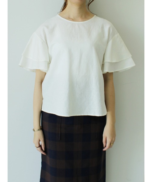 さりげなく華やかな着こなしをメイクするブラウス。ゆったりとしたフレアスリーブが腕のラインを華奢にみせてくれる1枚です。しなやかな質感がコーデに品を添えるフレンチリネン素材を使用。バックタックが入ったシルエットで取り入れやすいのもうれしいポイントです。
