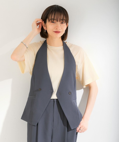 【カジュアルながらも女性らしさを引き立てる、こだわりの生地感】 落ち感のある素材を使用したシンプルなTシャツ。程よい透け感が今年らしい印象を演出します。裾は少し長めなのでタックインもしやすくて◎ベーシックなIVORYと、コーデのアクセントになるBLUEとGREENを揃えたカラー展開にも注目です。 POINT ・カジュアルになりすぎない程よい透け感 ・タックイン/アウトも楽しめる丈感 COORDINATE シンプルなので存在感のあるアイテムと相性抜群。着回し力が高いので色違いでお持ちいただくのもおすすめです。 ※この商品はデザイン上、モノフィラメント糸を使用しています。糸の特性上、ザラザラした肌触りがあり、肌に触れますと赤くなる場合があります。特に肌が弱い方や汗をかきますと顕著になります。直接肌には着用せず、下に一枚着用することをおすすめします。また、着用して肌に異常を感じた場合は、直ちに着用をお避けください。 ※この商品は、素材の特性上、激しい動きで強い力がかかったり、他のものに引っ掛かったりすると、滑脱(縫い目が滑って開いたり、縫いしろが抜ける)したり、目寄れ(織り糸が滑って片寄り、織り目が開く)が生じる場合があります。ご使用の際には十分ご注意ください。 ※その他お取り扱いに関しましては、商品に付属のアテンションタグをご覧ください。 ※商品画像は、光の当たり具合やパソコンなどの閲覧環境により、実際の色味と異なって見える場合がございます。予めご了承ください。 ※商品の色味の目安は、商品単体の画像をご参照ください。 ▼お気に入り登録のおすすめ▼ お気に入り登録商品は、マイページにて現在の価格情報や在庫状況の確認が可能です。 お買い物リストの管理に是非ご利用下さい。 ----------------------------- 透け感:あり 伸縮性:あり 裏地:なし 光沢:なし ポケット:なし -----------------------------