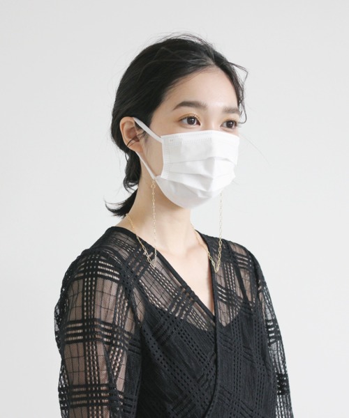 両端についた留め具をマスクにかけて使用するマスクチェーン。 マスクを外したいときにそのまま首から下げることができたり、留め具同士をかけてネックレスとしてもお使いいただけるので、機能性も◎ 華奢なゴールドで程よく華やかさがあり、結婚式やパーティーなどオケージョンシーンではもちろん、普段使いもしやすいアイテムです。