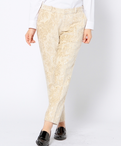 パイルジャカードパンツ☆ 中世の雰囲気漂うパイルジャカードを使用したトラウザーパンツ。オフホワイトのカラーで重くなりすぎないように仕上げました。洗いをかけてカジュアル感を出したのもAnother Editionならではのこだわりの一着です。 ※こちらの商品は同シリーズでジャケットもございます。詳しくは関連商品でご覧ください。 ※着用、お取り扱いの際は商品についておりますアテンションタグ、洗濯ネームを必ずご確認ください。 店舗にお問い合わせの際は、全国のAnother Edition店舗まで 下記の品名/品番をお申し付け下さい。 品名:AET PILE JQ PT 品番:56142991799