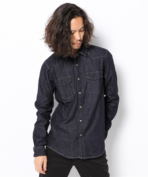 8オンスの一般的なデニム素材よりも軽いライトオンスのデニムを使用したシャツ。 アメリカ西部のカウボーイ達によって着用されてきたカジュアルシャツからきているウエスタンシャツに落とし込んでいます。 山形のショルダーヨーク、パールドットボタン仕様など、基本的なディティールを残し、細身のシルエット変更をしたシャープな印象に仕上げました。 パールドットボタンは本物の水牛ボタンのようなナチュラルカラーを選ぶことで、よりヴィンテージ感ある仕上がりになります。 日本生地、日本縫製と細部までこだわり抜いたより良い商品を、今後も提案し続けて行きます。 品番 1021142073 model:H176 B85 W64 H85 着用サイズ:40