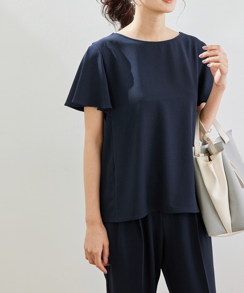 動きのある袖が魅力。シンプルで着回し力も◎。【素材感】 ・涼やかな麻調素材。 【デザイン・シルエット】 ・Vネックとラウンドネックの両方を楽しめる、前後2WAY仕様のプルオーバーブラウス。 ・二の腕を効果的にカバーしてくれる、フレアスリーブがフェミニン。 【カラー】 ・落ち着いた印象をアピールする4色展開。 【スタイリングポイント】 ・グリーンは、ネイビーのボトムに合わせるとクールに決まり、ホワイトやベージュ系のボトムに合わせると涼やかな印象に。 ・きれいめパンツに合わせて通勤仕様に。 ・同素材のパンツ(品番:GDS11380)に合わせてセットアップで着用可能。 ----------------------------- 裏地:なし 透け感:なし(ホワイト(10)はややあり) 伸縮性:あり 生地感・厚さ:やや薄手 季節:夏 ----------------------------- ※撮影時の光、お使いのモニター環境によって色の見え方が違う場合がございます。