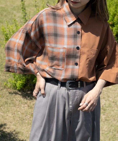 -アイテム説明-他にないkutirらしい古着っぽシャツ♥無地のシャツをチェックシャツとアレンジしたデザインがポイント!着回しもしやすいので、一着もっておけば大活躍間違いなしのアイテムです♪オーバーサイズなのでゆるっと着用できます。-コーディネート-オーバーオール、デニムパンツやショートパンツに合わせてメンズライクに着こなしてもよし、マキシ丈のプリーツスカートやロングスカートと合わせてレディースライクに着こなしても◎ボタンを開けてタンクトップなどのインナーの上に羽織りとしても着用できます!スニーカー、ローファー、フラットトングサンダルとの相性も抜群です!今季はバケットハットやキャスケットの帽子と合わせてワンポイントプラスしても可愛いです♪ーーーーーーーーーーーーーーーー透け感:なし裏地:なし伸縮性:なし光沢感:なし生地の厚さ:普通ーーーーーーーーーーーーーーーー-スタッフ着用コメント-身長:159cm/体型:普通/普段サイズ:Mサイズ/着用サイズ:Mサイズサイズ感:全体的に少し大きめなのでゆったりとしたサイズ感素材感:無地:ハリのあるサラサラした素材感 チェック柄:柔らかい素材感着心地:ゆったりとしていてストレスフリーに着用していただけます-kutirブランドコンセプト-女の子はメンズライクだけど可愛く古着っぽさを、男の子はイマドキの古着っぽさ、ストリート感をイメージした《WEB限定》ブランド。2020/8/12(wed.) kutir blackがリブランディングし【Adoon plain】としてSTART!※サイト上のカラー名と、お届け商品に記載されているカラー名が異なる場合がございます。商品ページカラー名:オレンジ→商品タグカラー名:テコラッタ商品ページカラー名:ライトブルー→商品タグカラー名:サックス※ご覧いただく環境により、実物と色味が異なって見える場合がございます。ご了承ください。【お買い物をよりお楽しみいただくために】▼商品のお気に入り登録(ハートマークをクリック)完売カラーの再入荷通知や、ラスト1点の通知、セールの通知も受けることができます。▼ブランドのお気に入り登録新商品や再入荷など、いち早くブランドのお得な情報を受け取ることができます。