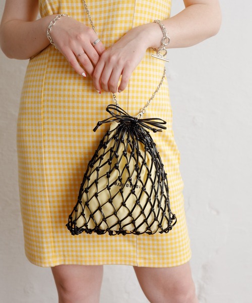 メッシュとナイロン風素材のコンビネーションが可愛い巾着BAGが登場【Material】メッシュ編みの部分は合成皮革とナイロン風のポリエステル素材がドッキング。取り外し可能なショルダーか軽いシルバーのチェーンです。【Design】夏らしい、メッシュ編み地の間から見える「BONJOUR GIRL」のロゴが特徴的な異素材コンビの巾着ショルダー。とっても軽く、持ちやすく、使いやすいアイテムです。チェーンは取り外し可能なので、巾着の紐部分だけを持ってお出かけも可能ミニバッグですが、お財布・スマホ・ポーチなどしっかり収納可能!ショルダーとしても、手持ちの巾着としても使え、コーディネートのアクセントにぴったりなBAGです!クールなスタイリングにぴったりです!【関連品番】ZPX61010----------裏地:なしポケットの数:なしA4収納:なしショルダー紐:シルバーチェーン(取り外し可能)----------ショルダー長さ125cm【スタッフレビュー】バッグインバックにも、夏らしいデザインなのでちょっとしたお出かけにおすすめのサイズ感。夏はワンピースに合わせてコーディネートしたら絶対可愛いですね。【お店ではこんなお客様が購入されています】 夏に向けて小さめのバッグをお探しの方へ。
